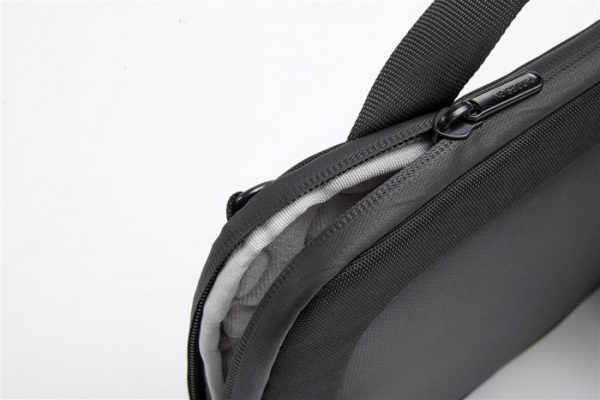 Taška na 16" notebook s vonkajším vreckom. Precízne vyrobená z recyklovaného materiálu 1200D s vodoodpudivou úpravou, vodeodolným zipsom a šedou chladivou podšívkou z flísu. Odnímateľný ramenný popruh. Skenovateľná zložka AWARE™ garantuje obsah recyklátu.