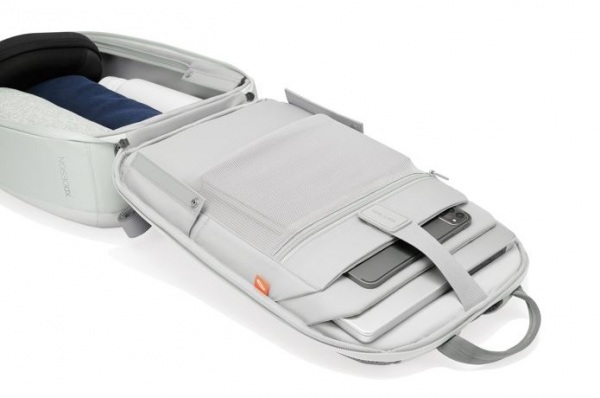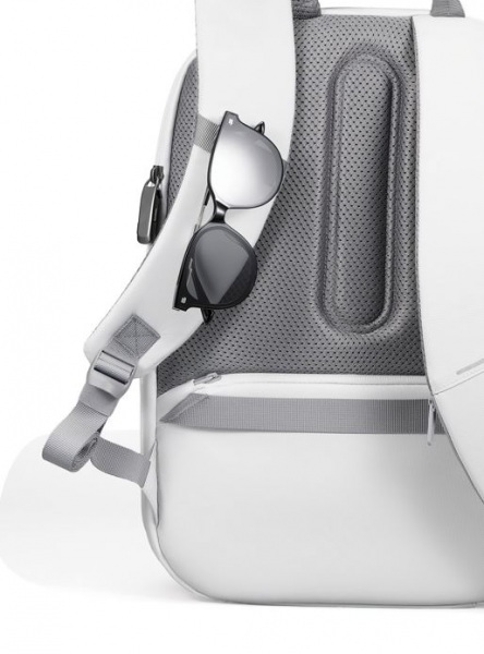 Vylepšené bezpečnostné prvky, samo-uzamykací kovový zips, ľahká váha a odolná konštrukcia. Vodeodolná časť a zipsy. Skryté vrecká s RFID ochranou, skryté vrecko na vloženie sledujúceho prívesku. AWARE™. Podiel recyklátu: 14 %. Registrovaný dizajn®