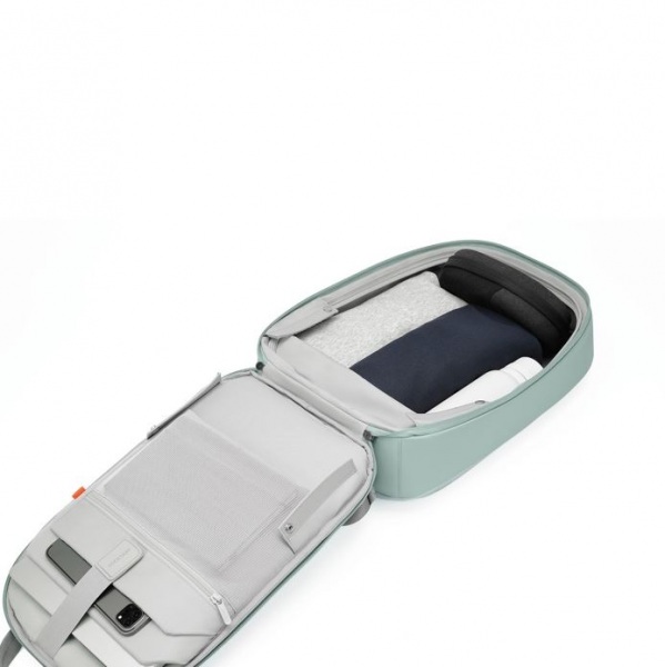 Vylepšené bezpečnostné prvky, samo-uzamykací kovový zips, ľahká váha a odolná konštrukcia. Vodeodolná časť a zipsy. Skryté vrecká s RFID ochranou, skryté vrecko na vloženie sledujúceho prívesku. AWARE™. Podiel recyklátu: 14 %. Registrovaný dizajn®