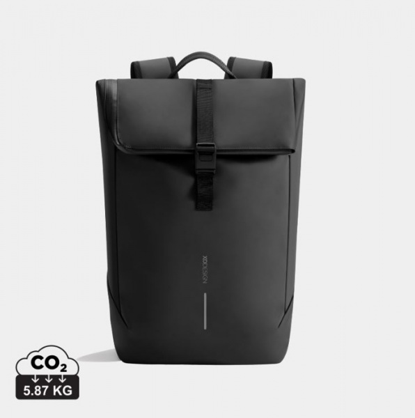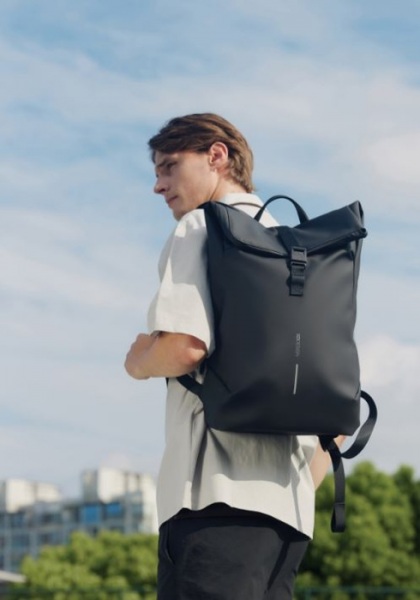 Jedinečná hlavná priehradka v tvare L so širokým otváraním, rozšíriteľný oddiel a priestor pre 16” notebook. Dizajn proti krádeži, samouzamykateľný kovový zips. Zadné vrecká a vrecká na fľašu. Vodeodolný povrch. Podiel recyklátu: 17%. Registrovaný design®.