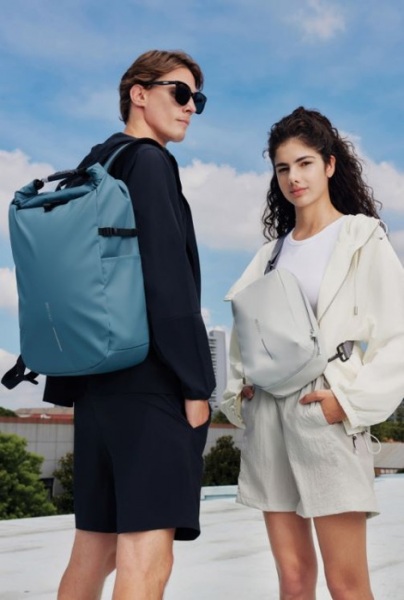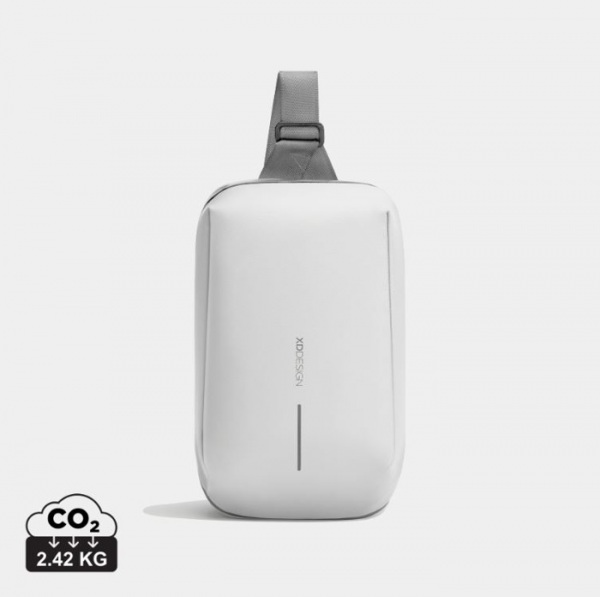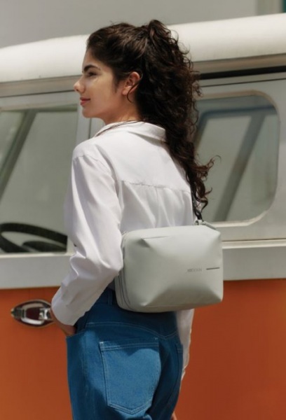 Hlavná priehradku v tvare L so širokým otváraním a rozšíriteľným oddielom. Dizajn proti krádeži, zadné vrecko, otočný uzáver zipsu, vodeodolný povrch. Má dostatočnú kapacitu pre 8” iPad min, či peňaženku. Podiel recyklátu: 17%. Registrovaný design®.