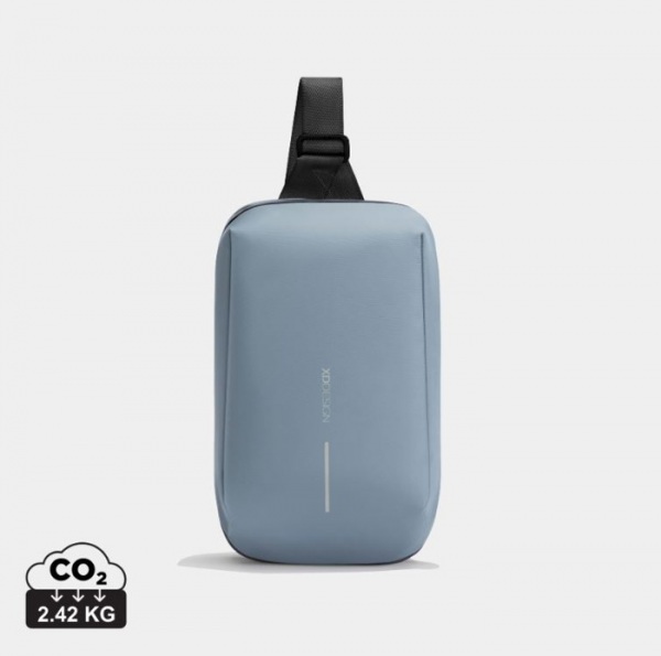 Hlavná priehradku v tvare L so širokým otváraním a rozšíriteľným oddielom. Dizajn proti krádeži, zadné vrecko, otočný uzáver zipsu, vodeodolný povrch. Má dostatočnú kapacitu pre 8” iPad min, či peňaženku. Podiel recyklátu: 17%. Registrovaný design®.