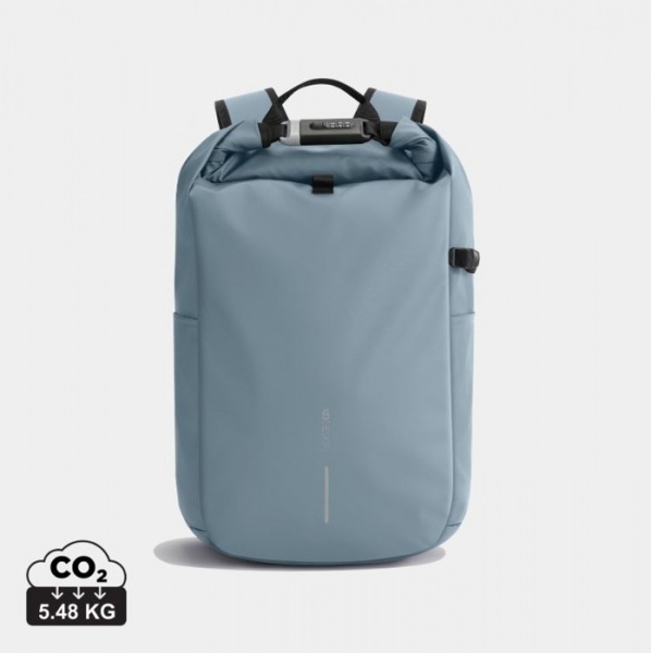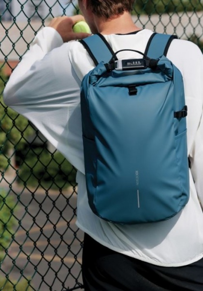 Zrolovaním hlavnej priehradky a jej zabezpečením pomocou zámku batoh ponúka úplné uzavretie. Skryté vrecká na zadnej strane. Bočné vrecko na fľašu. Polstrované priehradky pre 16” laptop a sieťové vrecká. Podiel recyklátu: 11%. Registrovaný design®.