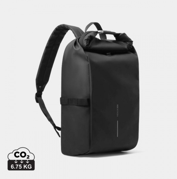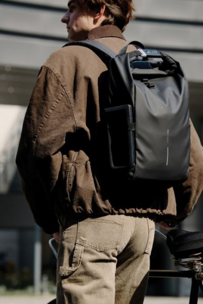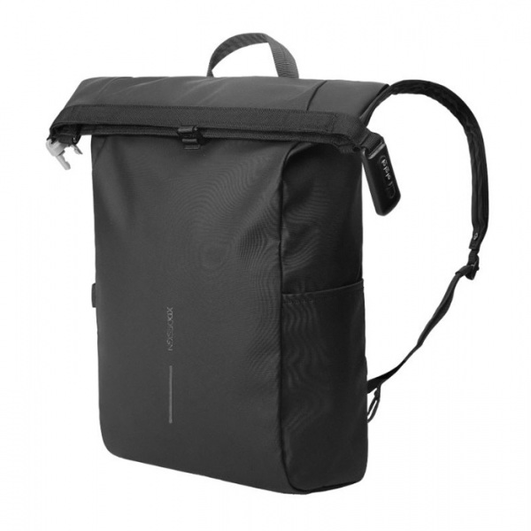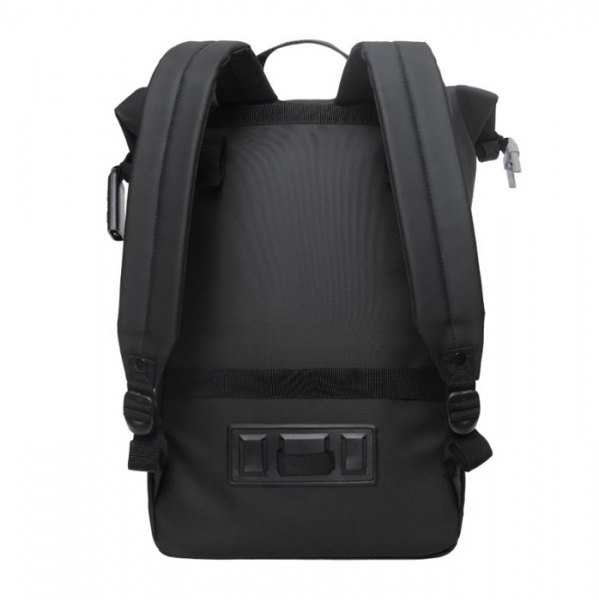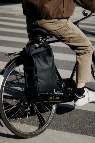 Hlavnú priehradku je možné zrolovať a zaistiť kombinačným zámkom, možnosť uzamknúť k pevnému predmetu alebo pripevniť k rámu kolesa. Polstrované vrecko na 16" laptop a sieťované vrecká na drobnosti. Vonkajšia časť z vodeodolného PU. Registrovaný design