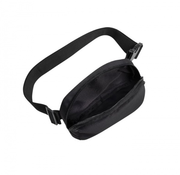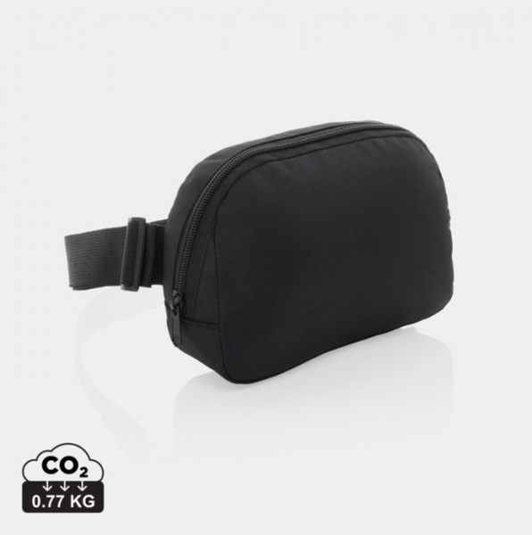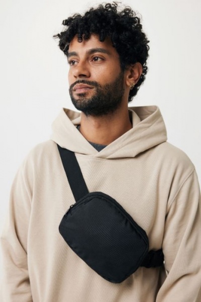 Taška zo 100% rPET AWARE™ má nastaviteľný ramenný popruh (100 cm) so šírkou 4 cm. Ponúka zadné vrecko na zips a hlavnú priehradku na zips. Tašku je možné nosiť krížom cez rameno alebo ako ľadvinku. Neobsahuje PVC.