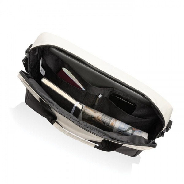 Hlavný priestor s oddielom pre 15,6" notebook. Pútka na perá a vrecká. Vyrobené zo 100% recyklovaného polyesteru vrátane zložky AWARE™ garantujúcej obsah recyklátu. Z výťažku každého predaného produktu je prispených 2 % na podporu iniciatívy Water.org.