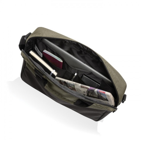 Hlavný priestor s oddielom pre 15,6" notebook. Pútka na perá a vrecká. Vyrobené zo 100% recyklovaného polyesteru vrátane zložky AWARE™ garantujúcej obsah recyklátu. Z výťažku každého predaného produktu je prispených 2 % na podporu iniciatívy Water.org.