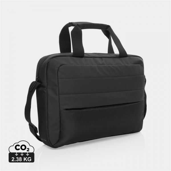 Taška s priestorom pre 15,6" notebook. Dve horné uši, ramenný popruh. Vyrobené z recyklovaného polyesteru s obsahom skenovateľnej zložky AWARE™ garantujúcej obsah recyklátu. 2% z každého predaného produktu na podporu iniciatívy Water.org. Bez PVC.