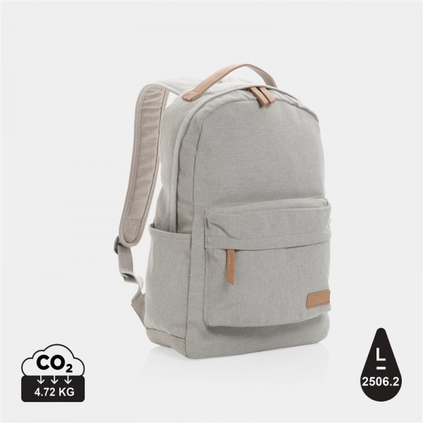 Ruksak z recyklovaného plátna má polstrované vrecko na 14 notebook a predné a zadné vrecko na ďalšie drobnosti. Výrobou tašky sa ušetrí 2506 litrov vody.