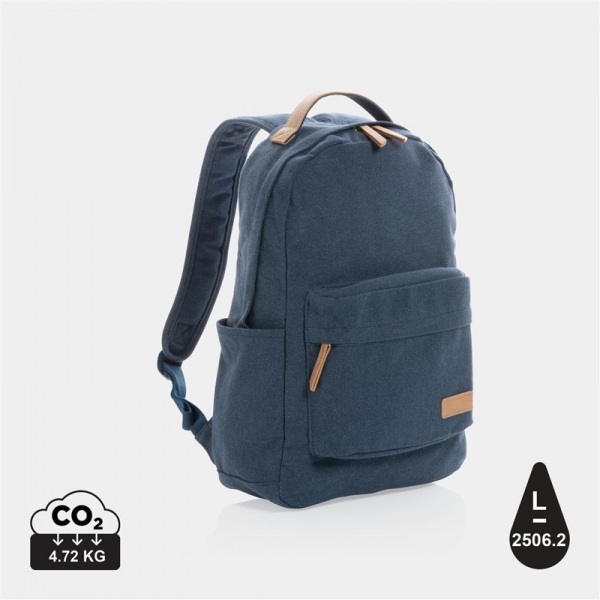 Ruksak z recyklovaného plátna má polstrované vrecko na 14 notebook a predné a zadné vrecko na ďalšie drobnosti. Výrobou tašky sa ušetrí 2506 litrov vody.