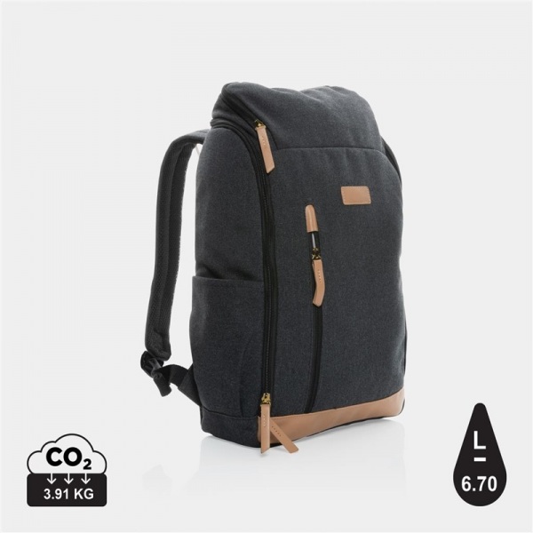 Batoh z 16 oz. recyklovaného canvas. Hlboký hlavný priestor s oddielom pre až 15" notebook. Široké otváranie na zips. Vrátane skenovateľnej zložky AWARE™ garantujúcej obsah recyklátu. 60% rec. bavlna, 40% rec. polyester, podšívka zo 150D rec. polyesteru.