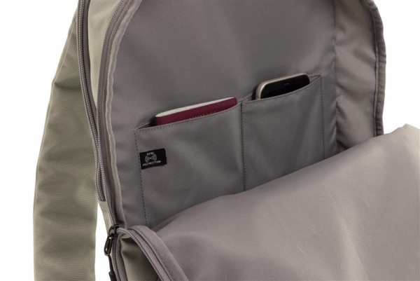 Batoh na 15.6" notebook z 1200D polyesteru. Hlavný oddiel, oddiel na notebook, predné vrecko na zips. Vyrobené z rec. polyesteru vrátane skenovateľnej zložky AWARE™. Na výrobu bolo použitých 32,7 500ml PET fliaš a ušetrených 19,5 l vody. Bez PVC.
