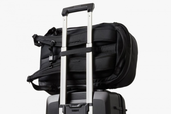 Rýchlo prístupné vrecko na 16" notebook pre jednoduché kontroly na letisku. Vonkajšie neviditeľné vrecká na cennosti. Vrecko s klipom na kľúče a vrecko na slnečné okuliare s mäkkou podšívkou. Polstrované ramenné popruhy a chrbát batohu , hrudný popruh.