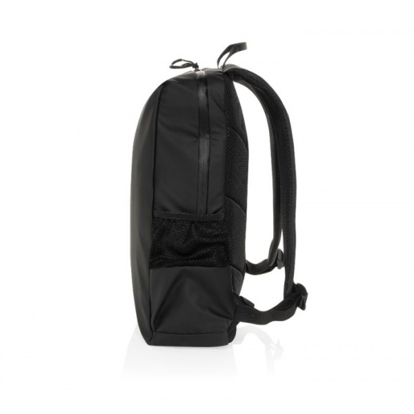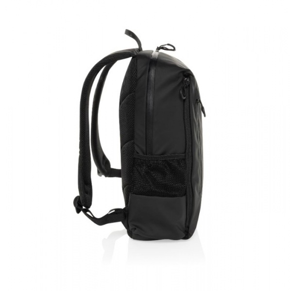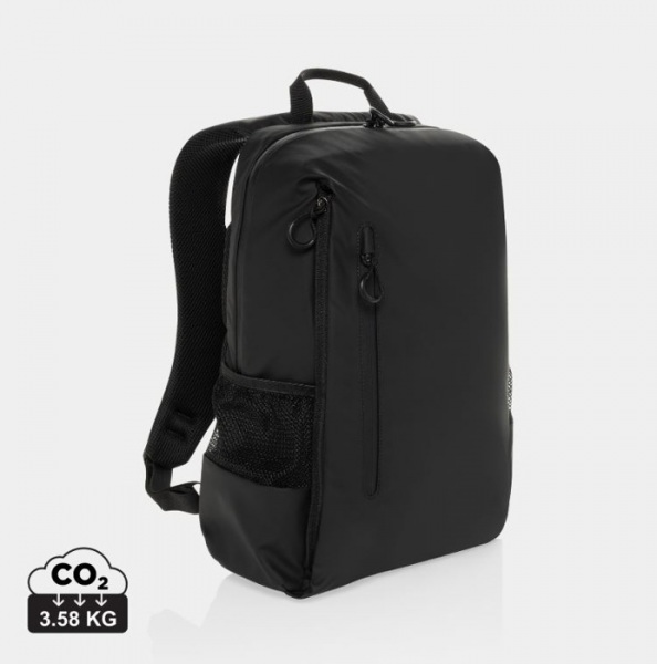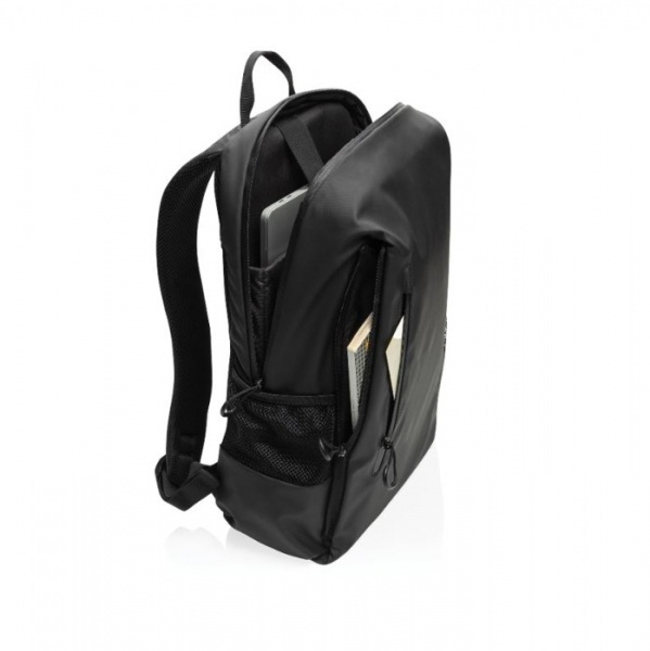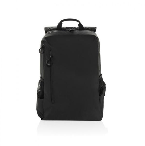 Hlavná priehradka pre notebook 15,6 palca a pásikom na suchý zip. Vnútri nájdete dve vrecká s ochranou RFID a dve priehradky na ceruzky. Nastaviteľné ramenné popruhy, predné a zadné vodeodolné zipsy. AWARE™. Neobsahuje PVC.