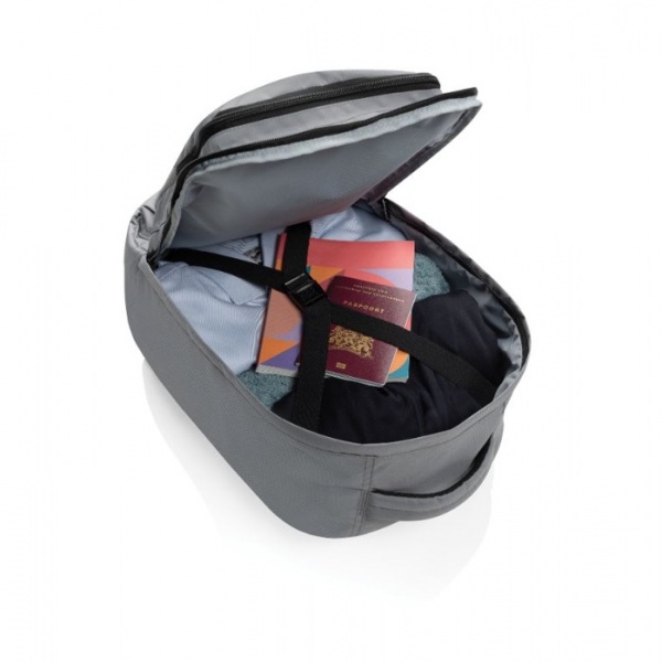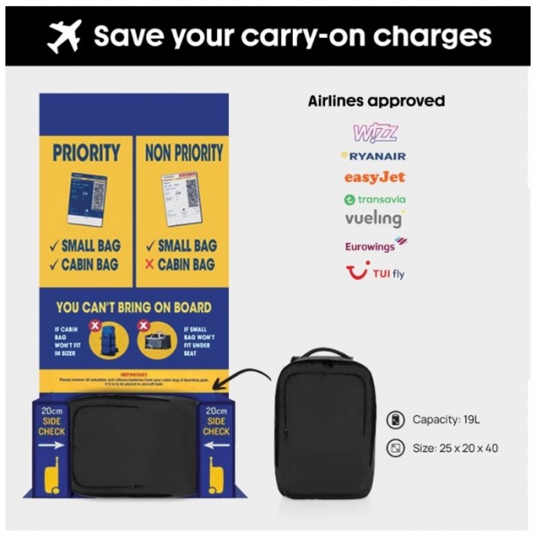 Nastaviteľné ramenné popruhy a predné vrecko na zips pre rýchly prístup. Batoh spĺňa požiadavky na maximálnu veľkosť bezplatnej príručnej batožiny u nízkonákladových spoločností. AWARE™. Neobsahuje PVC.
