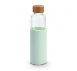 Borosilikátové sklenená fľaša s bambusovým uzáverom a silikónovým obalom. Fľaša má objem až 600 ml a je dodávaná v krabici.