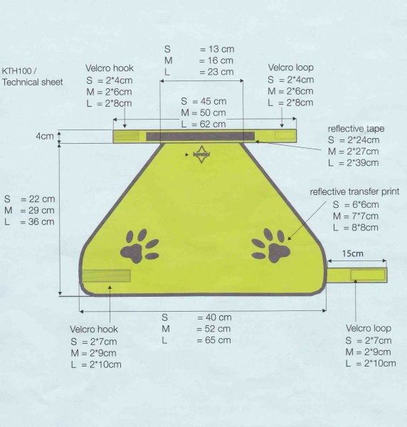 Veľkosť S Obvod krku cca. 45 cm / obvod brucha cca. 40 cm, veľkosť M Obvod krku cca. 50 cm / obvod brucha cca. 52 cm, veľkosť L Obvod krku cca. 62 cm / obvod brucha cca. 65 cm