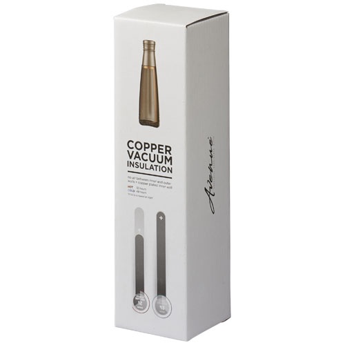 Táto fľaša je z vysoko kvalitnej nehrdzavejúcej ocele 18/8 s dvojitou stenou a vákuovou izoláciou. Vnútorná stena je pokovaná meďou pre maximálnu vodivosť, aby nápoje vydržali po dobu 12 hodín horúce a studene po dobu 48 hodín. Objem 500 balené v bielej k