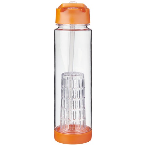 Fľaša s bajonetovým uzáverom a odklápacou nápojovou krytkou (flip-top). Obsahuje skrutkovací infuzér na ovocie k dodaniu tej správnej príchuti Vášmu obľúbenému nápoju. Dno možno odskrutkovať pre prístup k infuzéru a pre ľahšie umývanie. Objem 740 ml. BPA-