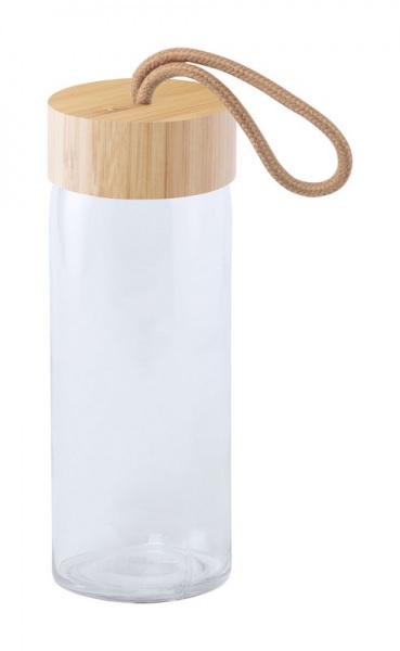Sklenená športová fľaša s bambusovým viečkom, 430 ml. V darčekovej krabičke.