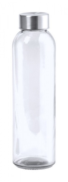 Transparentné sklenená športová fľaša na pitie s kovovým viečkom, 500 ml. V darčekovej krabičke.