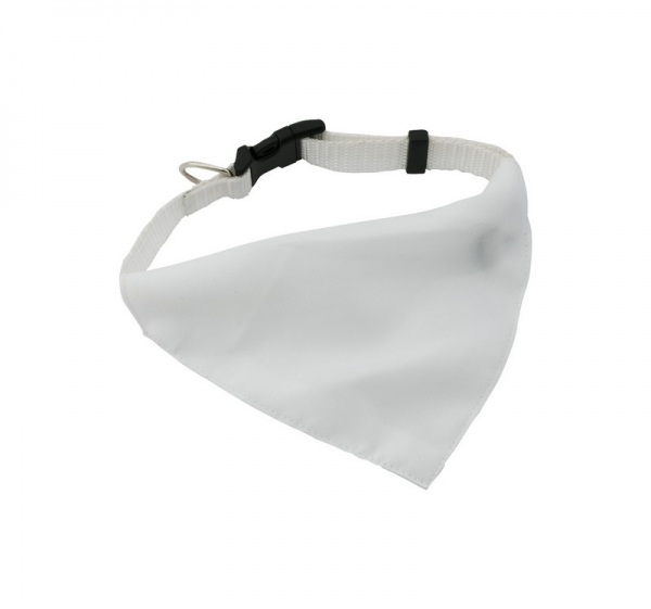 Obojok pre psov so šatkou a plastovou prackou, polyester. Dĺžka obojka je nastaviteľná v rozmedzí 30 - 50 cm. Šatka sa dá posúvať.