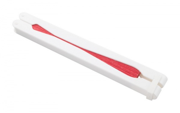 Papierový vejár s plastovým držadlom.