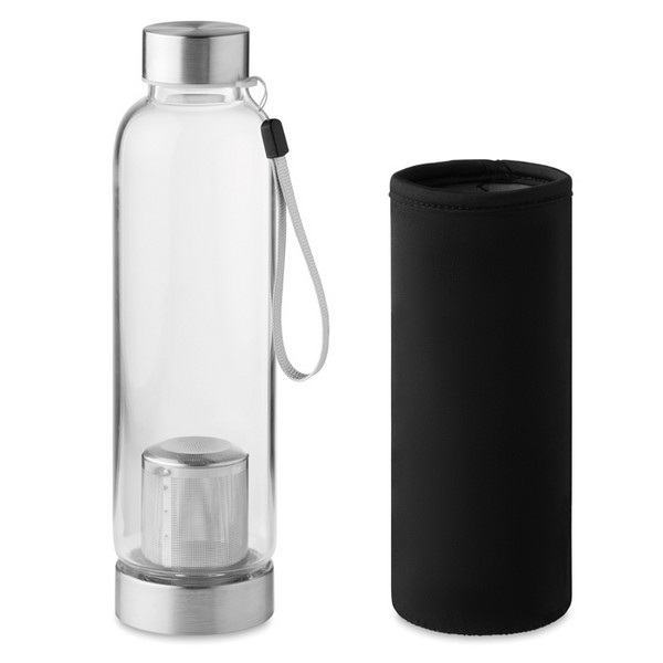 Jednostenná fľaša z borosilikátového skla s Infuserom na čaj. Neoprénový obal. Objem 500 ml.