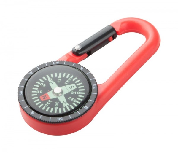 Plastová karabinka s kompasom.