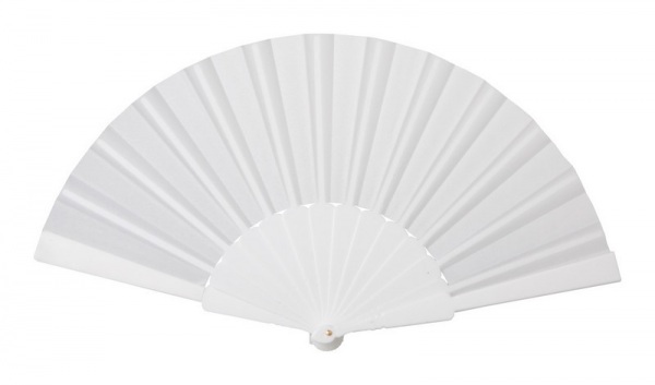 Látkový vejár s plastovou rukoväťou.