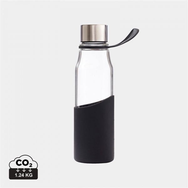 Sklenená fľaša so silikónovým puzdrom. Puzdro umožňuje pohodlné uchopenie a chráni pred nárazmi. Fľaša je vyrobená z borosilikátového skla, ktoré je odolnejšie voči teplotným šokom. Borosilikát je odolný a kvalitný materiál, ktorý odolá väčšine nárazov.