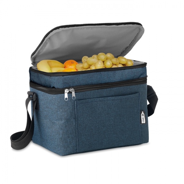 Chladiaca taška s 2 priehradkami a PEVA podšívkou. Pretože má dve oddelené priehradky, môžete udržovať v chlade rôzne veci. Taška má predné vrecko a vďaka nastaviteľnému ramennému popruhu sa dobre nosí. Izolačný materiál: 0,15 mm PEVA + 3 mm pena.