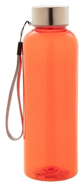 Športová fľaša z RPET plastu s vrchnákom nerezovej ocele a remienkom na ruku. Neobsahuje BPA, 500 ml. Nevhodné pre sýtené nápoje.