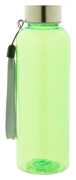 Športová fľaša z RPET plastu s vrchnákom nerezovej ocele a remienkom na ruku. Neobsahuje BPA, 500 ml. Nevhodné pre sýtené nápoje.