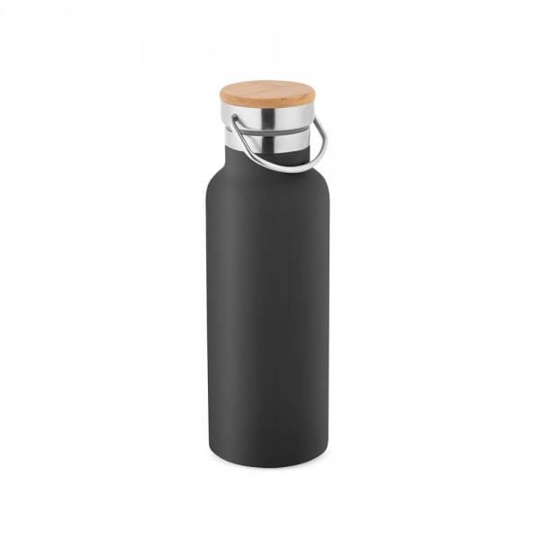 Dvojstenná vákuovo izolovaná fľaša z nehrdzavejúcej ocele (36 % recyklovanej). Bambusové veko a rukoväť z nehrdzavejúcej ocele. Objem až 570 ml. Dodávané v darčekovej krabičke z kraftového papiera.