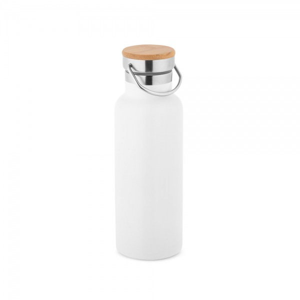 Dvojstenná vákuovo izolovaná fľaša z nehrdzavejúcej ocele (36 % recyklovanej). Bambusové veko a rukoväť z nehrdzavejúcej ocele. Objem až 570 ml. Dodávané v darčekovej krabičke z kraftového papiera.