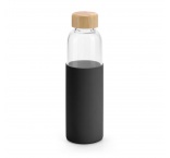 Borosilikátové sklenená fľaša s bambusovým uzáverom a silikónovým obalom. Fľaša má objem až 600 ml a je dodávaná v krabici.