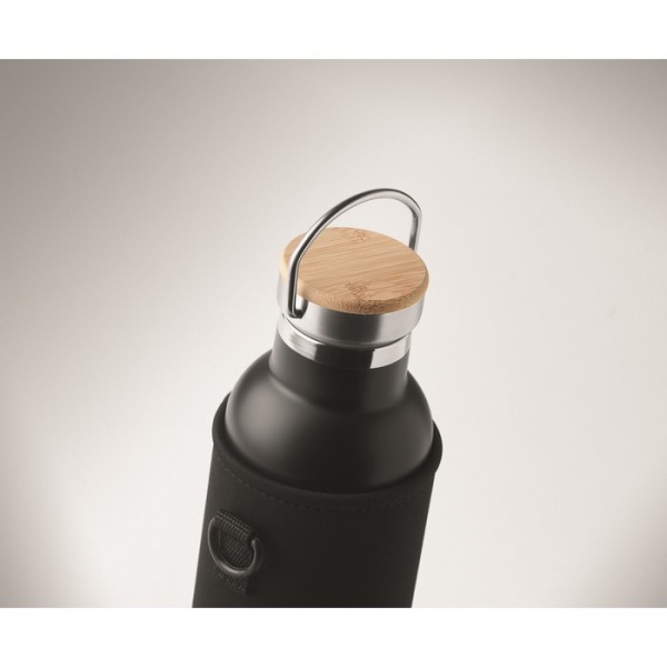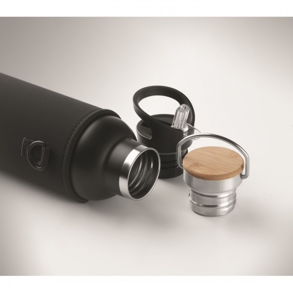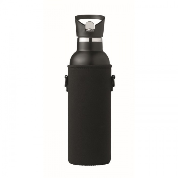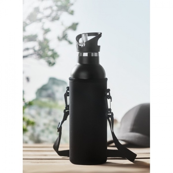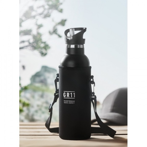 Izolovaná nerezová fľaša s tesným skrutkovacím uzáverom alebo s uzáverom so slamkou. Dodáva sa s neoprénovou taškou. Objem: 700 ml.