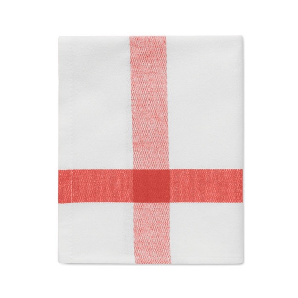 Kuchyňská utěrka z recyklovaných látek (50 % recyklované bavlny a 50 % recyklovaného polyesteru). Gramáž 180 gr/m?.