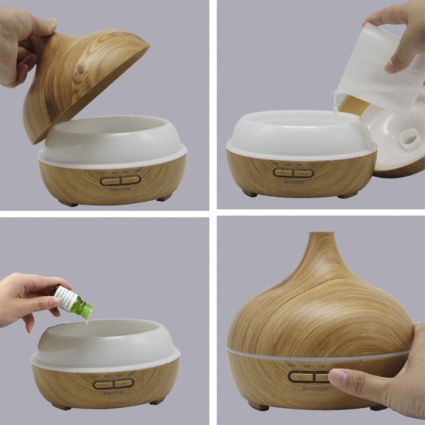 Zvlhčovač vzduchu, ktorý rozptyľuje vôňu. Časovač na 1/3/6 hodin. Vrátane LED nočného svetla. S káblom na napájanie. AC 100-240 V DC 24 V/0,5 A.