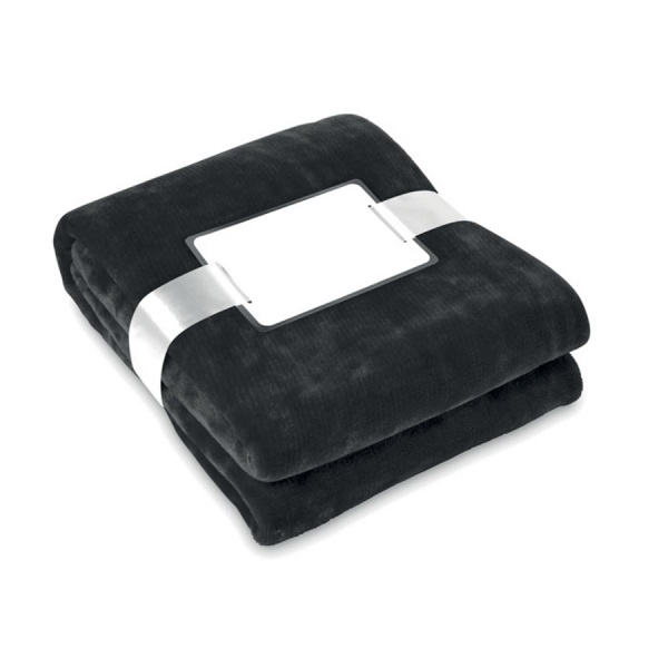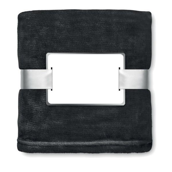 Flanelová fleecová deka 280g/m2 zabalená v stuhe s kartičkou, ktorú je možné potlačiť.
