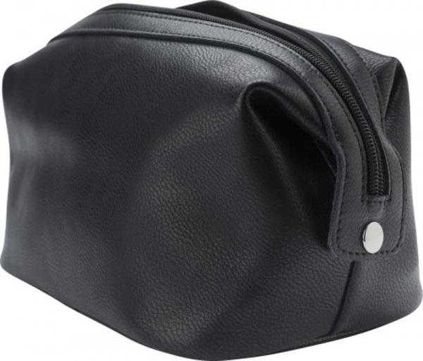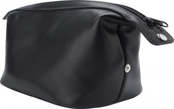 Kožená toaletná taštička so zipsom. Dve tlačidlá na boku na stabilizáciu tašky.