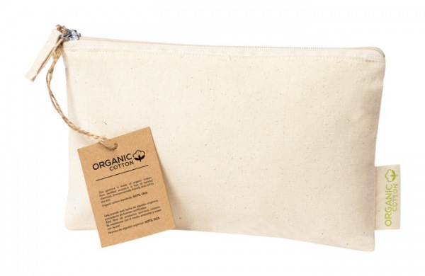 Kozmetická taštička na zips z organickej bavlny so štítkom. 100% organická bavlna, 180 g/m2.