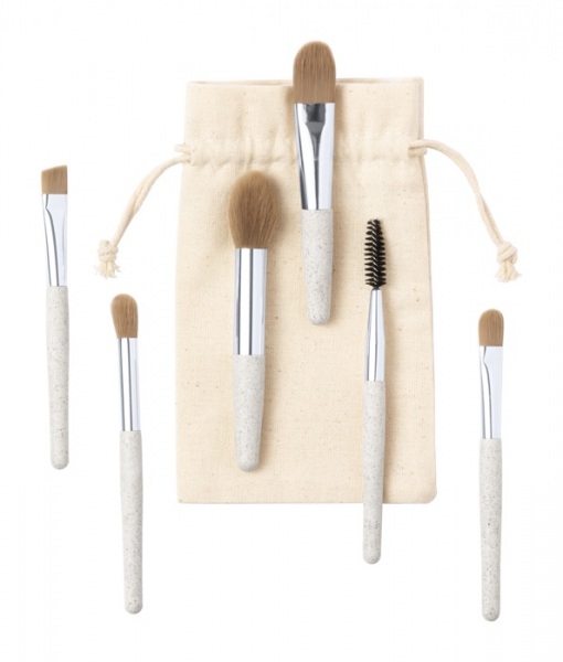 6 dielna sada štetcov na make-up v ekologickom prevedení z pšeničnej slamy a PP plastu, v bavlnenom vrecku.