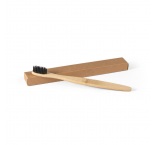 Zubná kefka s bambusovým telom a nylonovými štetinami. Dodávané v darčekovej krabičke z kraftového papiera