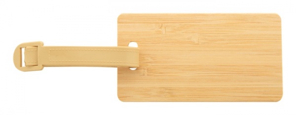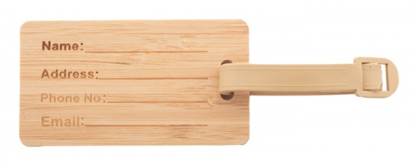 Bambusová visačka na batožinu s plastovým pásikom a prackou.