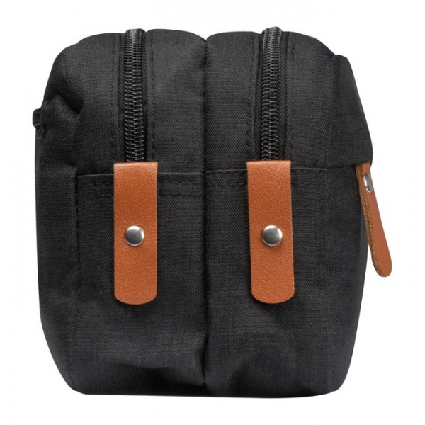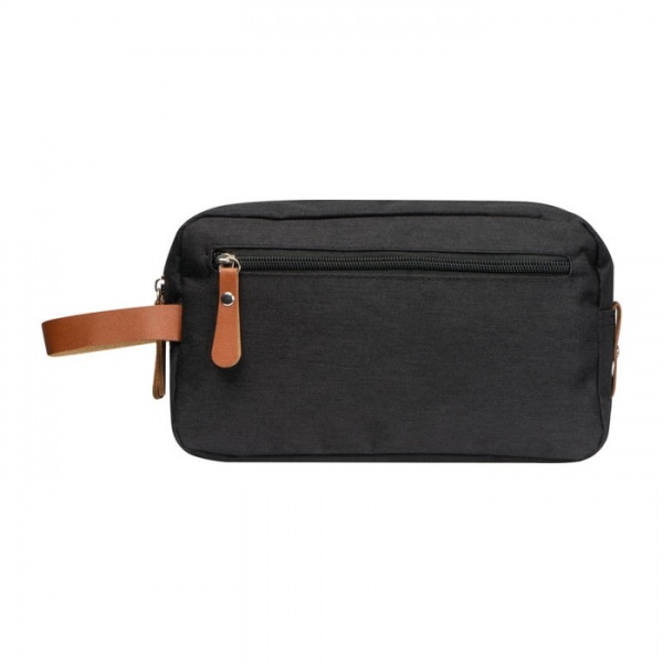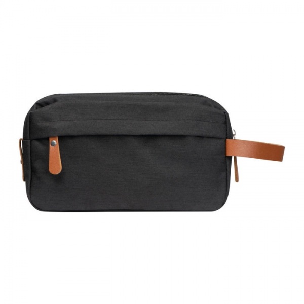 Polyesterová kozmetická taštička z 300 D polyesteru, s viacerými priehradkami, s pútkom z PU materiálu.