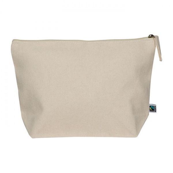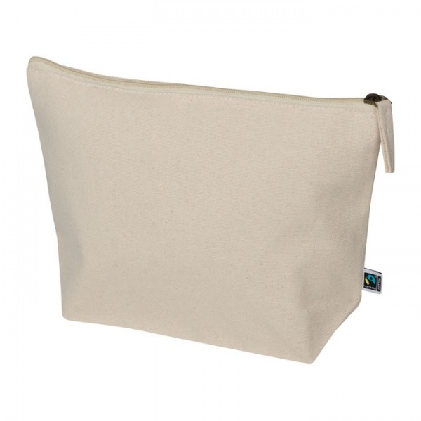 Fairtrade kozmetická taška z bavlny (320 g/m2) s štítkom Fairtrade..