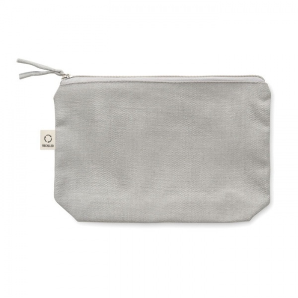 Toaletná taška z recyklovanej látky (70 % recyklovaná bavlna a 30 % polyester RPET) so zipsom v ladiacej farbe. Gramáž 320 g/m2.