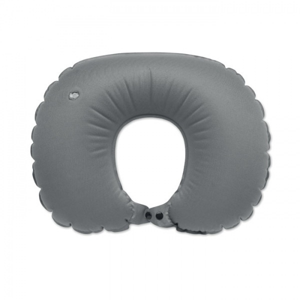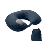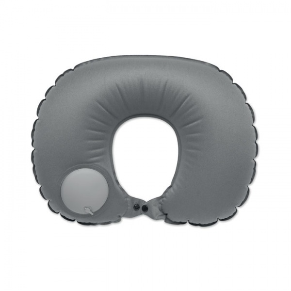 Rýchlo-nafukovací vankúš z mliečnej hodvábnej tkaniny so zabudovanou pumpičkou a uvoľňovacím systémom. Vrecko z rovnakého materiálu.